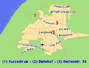 Das Haus liegt ebenfalls in kurzer Entfernung zum Kurzentrum mit dem Hallenbad und dem Haus der Insel, den dahinter befindlichen beiden Spielhäusern sowie zum "Sportpalast" am Hauptstrand. |